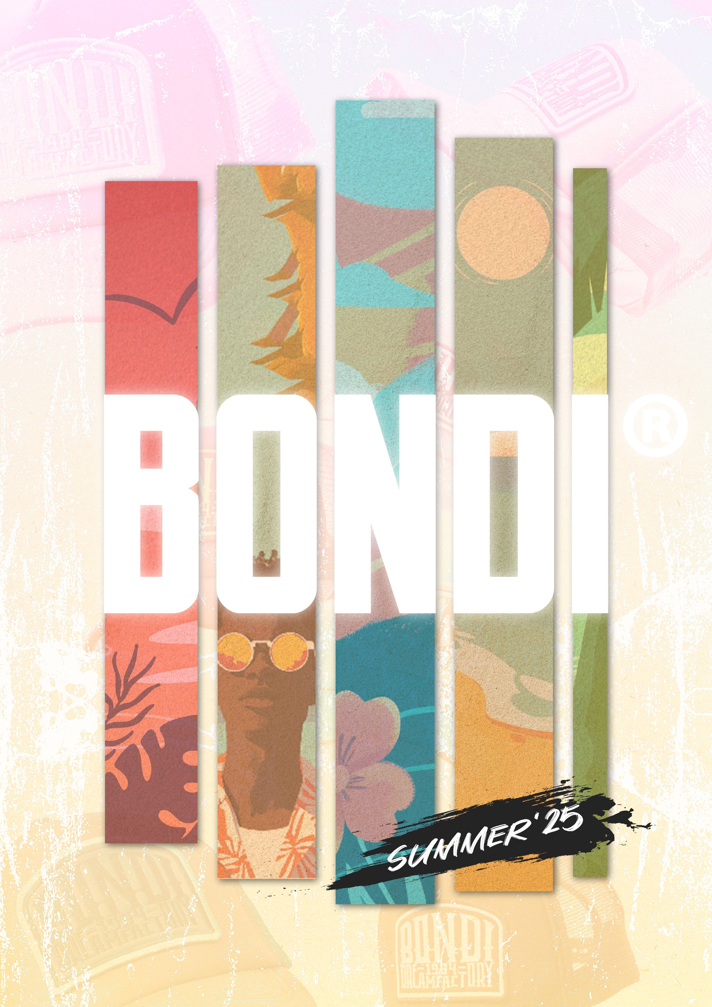 This editorial design project presents a seasonal catalog for BONDI's Summer 2025 collection. The layout emphasizes clean typography, vibrant imagery, and a cohesive visual narrative that captures the brand's essence and the summer vibe.